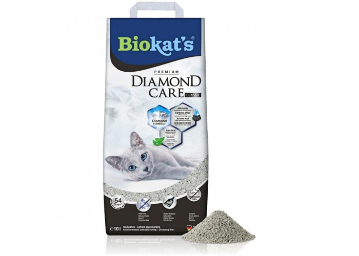 3. Регулярно додавайте новий наповнювач для підтримки оптимальної гігієни і запобігання запахам.Наповнювач туалету для котів Biokat's Diamond Care Classic 10 л бентонітовий - це високоякісний продукт, створений спеціально для ефективного управління потребами котів. Цей бентонітовий наповнювач має додаткові покращення за допомогою спеціального SSS (SuperScentSafety) аромату, який забезпечує надійний контроль неприємних запахів.