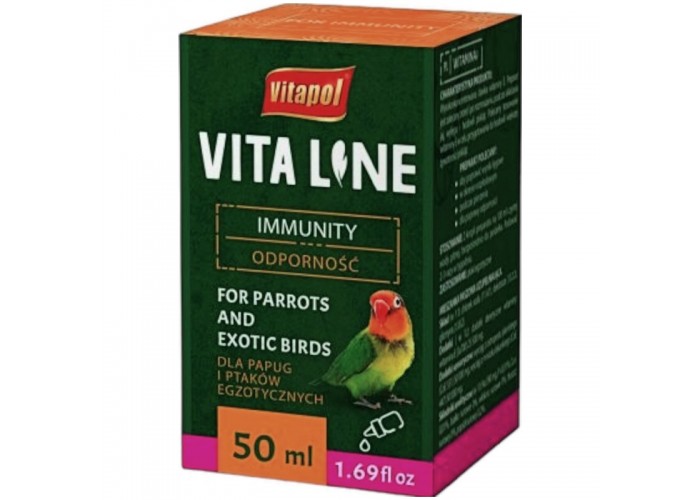 Вітаміни для птахів Vitapol Vitaline Immunity імунітет 50 мл - це спеціально розроблена формула, що допомагає зміцнити імунітет птахів і підтримує їхнє загальне здоров'я. Цей товар створений з урахуванням потреб та особливостей птахів, і містить необхідну групу вітамінів та мікроелементів, які допомагають зміцнити імунну систему птаха.