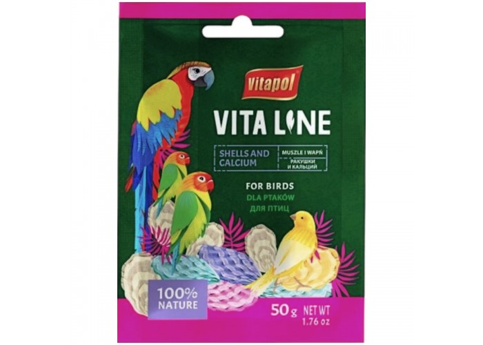 Кальцій для птахів Vitapol Vitaline Shells and calcium 50 г - це надійний та ефективний спосіб забезпечити необхідну кількість кальцію в раціоні птахів для підтримки здоров'я скорлупи яєць і кісток.Вітамінно-мінеральний комплекс для птахів Вітапол Віталайн Шелз енд Кальціум є необхідним доповненням до раціону птахів. Цей продукт містить звукоізольовану скорлупу з молюсків та дрібності кальцію, яка забезпечує натуральне джерело кальцію для птахів, особливо під час формування яєчників та процесів руйнування старої скорлупи.