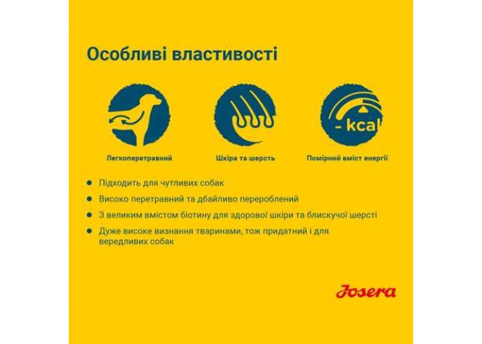 1. Застосовуйте корм Josera SensiPlus згідно рекомендацій виробника, щоб забезпечити собаці оптимальну денну порцію їжі.